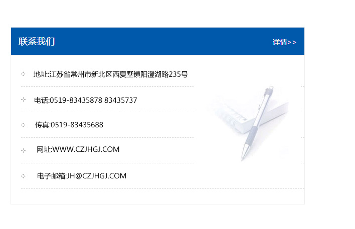 傳真:0519-83435688    郵編:213135    網址:WWW.czjhgj_com.bjtape.com    電子郵箱:JH@czjhgj_com.bjtape.com